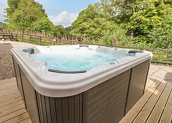 Accommodation ranges from traditional stone cottages with wood-burning stoves to modern lodges with floor-to-ceiling windows. Most hot tub properties sleep 2-8 people, with several accepting dogs for an additional fee of £20-£30.