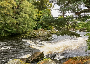 The Falls of Dochart (FK21 8XE) are unmissable. These impressive rapids run under the old stone bridge at the western entrance to the village. After heavy rain, they're absolutely thunderous. The best photos are taken from the bridge itself, but you can also access the small island of Inchbuie, the ancient burial ground of Clan MacNab, via a gate that's usually open during daylight hours.